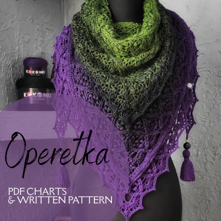 Operetka to szydełkowy wzór graficzny na chustę trójkątną.